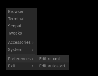 We have a menu! It is generated by teallach-menu, which coverts a human-readable menu format (example below) into openbox compliant XML.