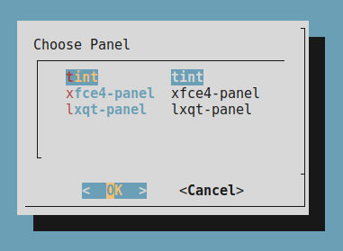# In the teallach-welcome script, choose either xfce4-panel or tint depending